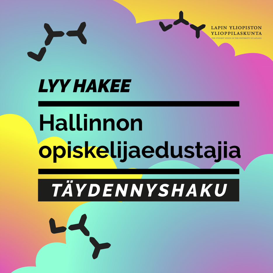 Lapin yliopiston ylioppilaskunta etsii opiskelijoiden joukosta sopivaa henkilöä toimimaan häirintäyhdyshenkilönä. Häirintäyhdyshenkilö toimii opiskelijayhteisön jäsenenä, johon opiskelijat voivat … [Lue lisää...] tietoaLYY etsii opiskelijoiden joukosta häirintäyhdyshenkilöä