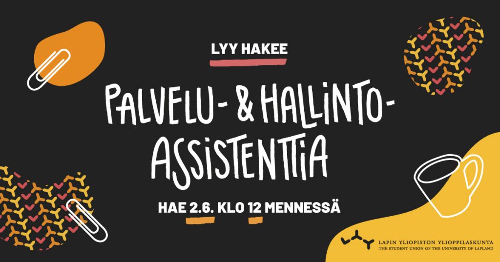 Hakukuulutus: LYY hakee palvelu- ja hallintoassistenttia Please note that this position requires fluent skills in Finnish Haluatko mielenkiintoisen työtehtävän, … [Lue lisää...] tietoaLYY hakee palvelu- ja hallintoassistenttia