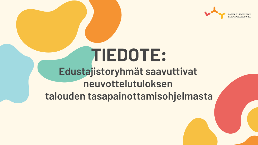 Lapin yliopiston ylioppilaskunnan (LYY) edustajistoryhmät ovat saavuttaneet neuvottelutuloksen keskipitkän aikavälin taloussuunnitelmasta ja siinä määriteltävistä sopeuttamistoimista. Neuvottelutulos … [Lue lisää...] tietoaTiedote: Edustajistoryhmät saavuttivat neuvottelutuloksen talouden tasapainottamisohjelmasta