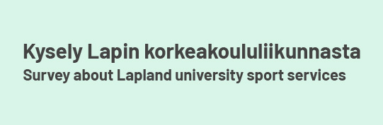 Vastaa Lapin yliopiston opiskelijoille suunnattuun kyselyyn korkeakoululiikunnasta. Kyselyllä kartoitetaan opiskelijoiden näkemyksiä ja kokemuksia Lapin korkeakoululiikunnasta. Kysely on anonyymi, ja … [Lue lisää...] tietoaKysely Lapin korkeakoululiikunnasta