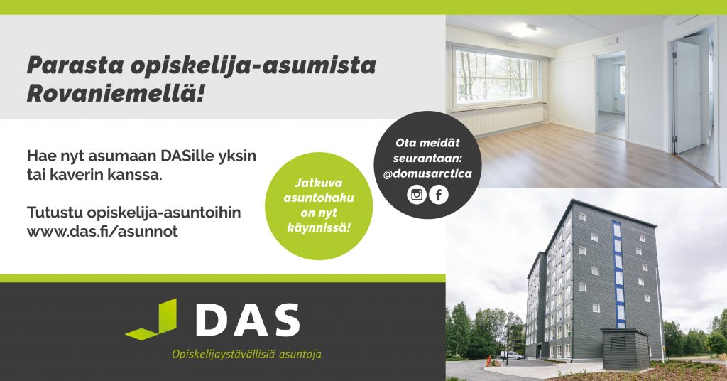 When moving to a new town, the first and certainly most important thing is to find a new apartment for yourself. Fortunately, there is the Domus Arctica Foundation, or DAS, in Rovaniemi, which offers … [Read more...] about Apply For An Apartment From DAS