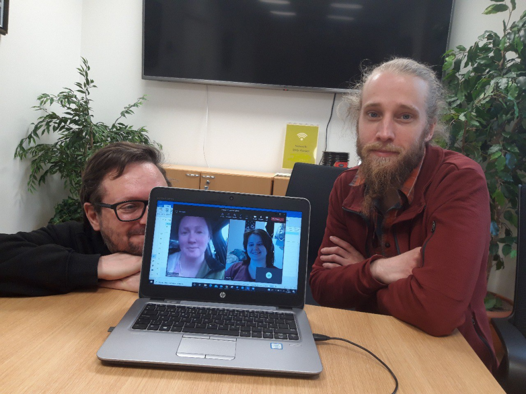 Asukastoimikunta koolla. Vasemmalta oikealle: Henkka, Annina Sundqvist, Eva Aho ja Juho Lintinen.