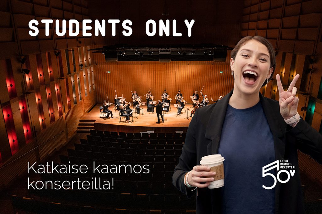 suomi - english Lapin kamariorkesterin syksyn tarjoukset opiskelijoille: Viime hetken lippu opiskelijakortilla kaikkiin konsertteihin 6€! Viime hetken lipulla on mahdollisuus edulliseen elämykseen … [Lue lisää...] tietoaOPISKELIJA – ORKESTERISI ODOTTAA! STUDENTS ONLY!