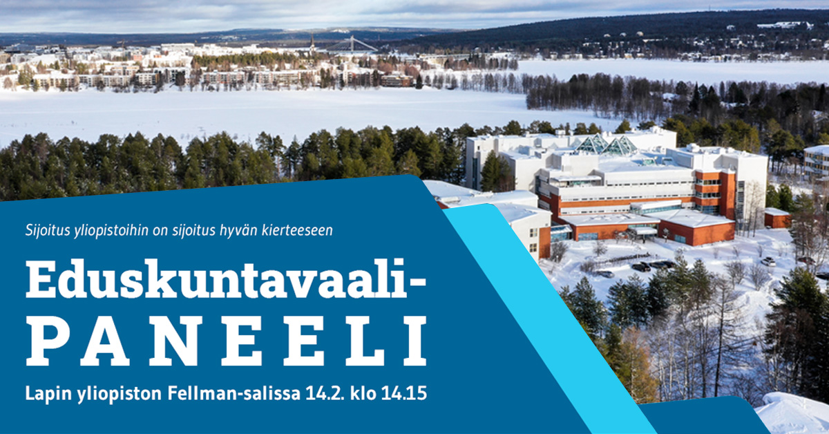 Lapin yliopisto ja Lapin yliopiston ylioppilaskunta (LYY) järjestävät eduskuntavaalipaneelin Lapin yliopistolla Fellman-salissa (Yliopistonkatu 8, Rovaniemi) sekä verkossa, linkki lisätään tälle sivulle.